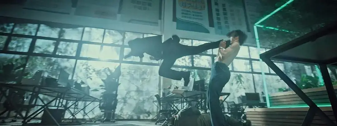 《怒袭》的故事,发生在一个电诈园里,安志杰闯进去是为了救自己的妹妹。然后,影片有点像《突袭》了,所有的故事都发生这个电诈园里,然后是玩游戏一样,一路打怪升级,逐渐靠近终极boss伍允龙。